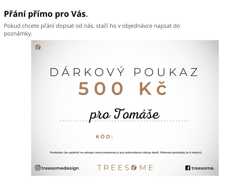 Pokud budete chtít přání dopsat od nás, stačí ho v objednávce napsat do poznámky. Pro přidání do košíku zaškrtněte osobní odběr Lidická, aby doprava vycházela na částku 0 Kč.