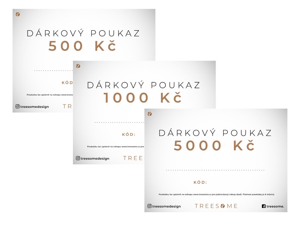 Chcete zakoupit dárek pro své blízké, ale nejste si jisti správným výběrem? Pak je pro vás ideální náš dárkový poukaz. Vybrat si můžete z hodnoty 500 Kč, 1000 Kč a 5000 Kč. Dárková poukázka je skvělou příležitostí k nákupu pro nerozhodné zákazníky, kteří chtějí udělat radost svým přátelům a blízkým. Poukázku obdržíte i s kódem do vaší e-mailové schránky a stačí ji jen vytisknout a dopsat přání.