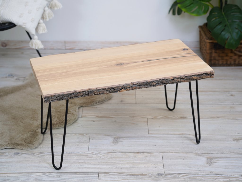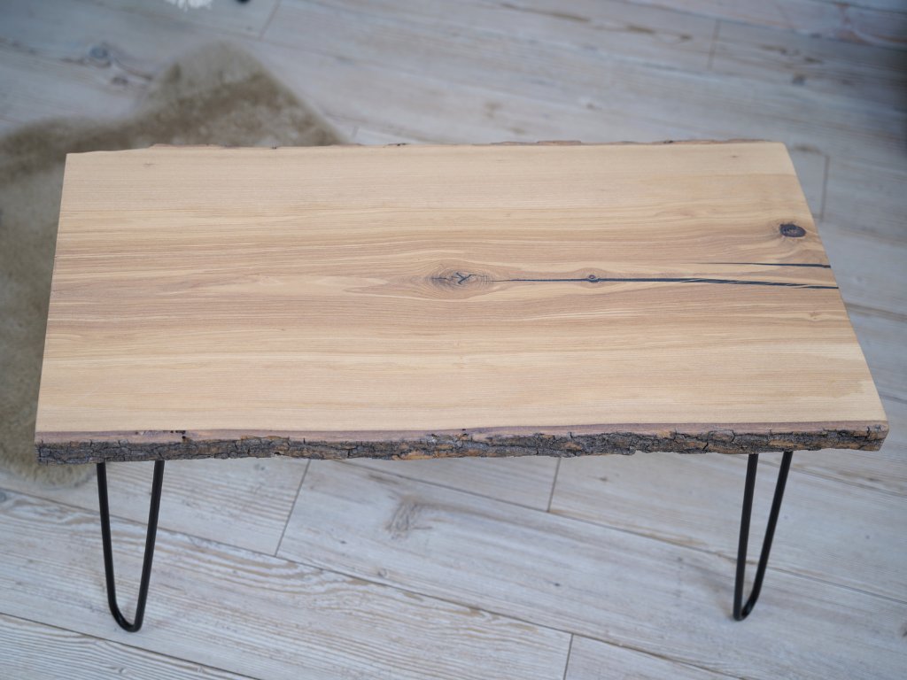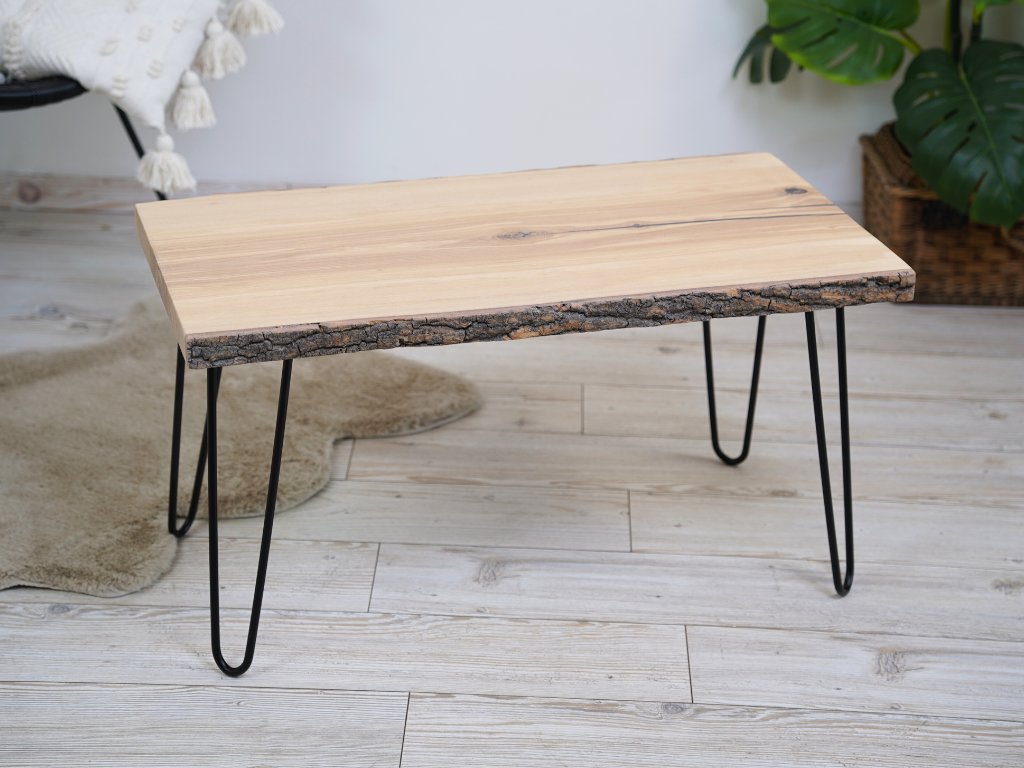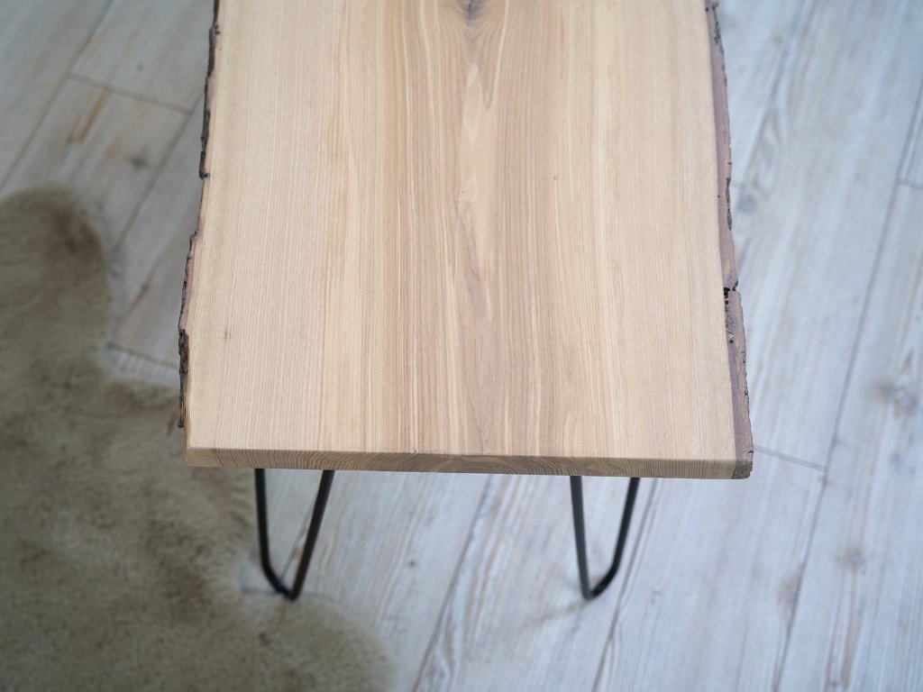 Jasanový konferenční stolek z přírodní masivní fošny 35-40x70-80 cm + Hairpin nohy Dle výběru