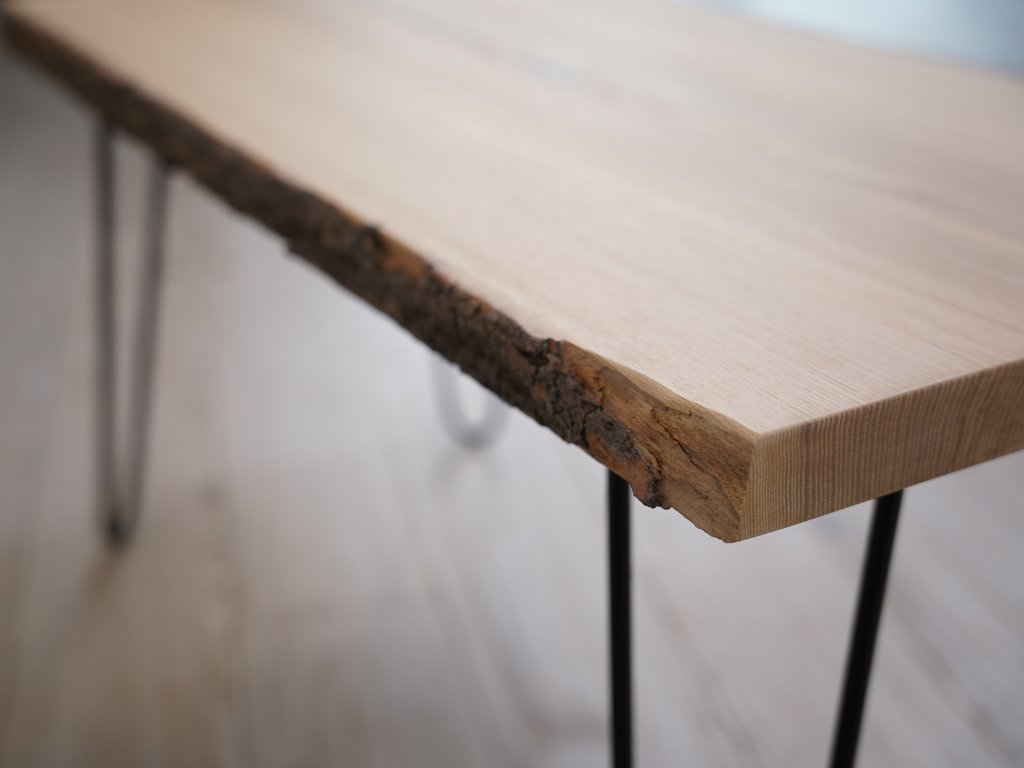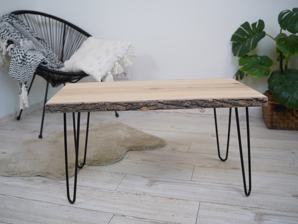 Masivní desku doplňují elegantní černé hairpin nohy, které dodávají celému stolku vzdušný a nadčasový vzhled. V nabídce máte na výběr z různých barev, které si můžete k fošně zvolit.