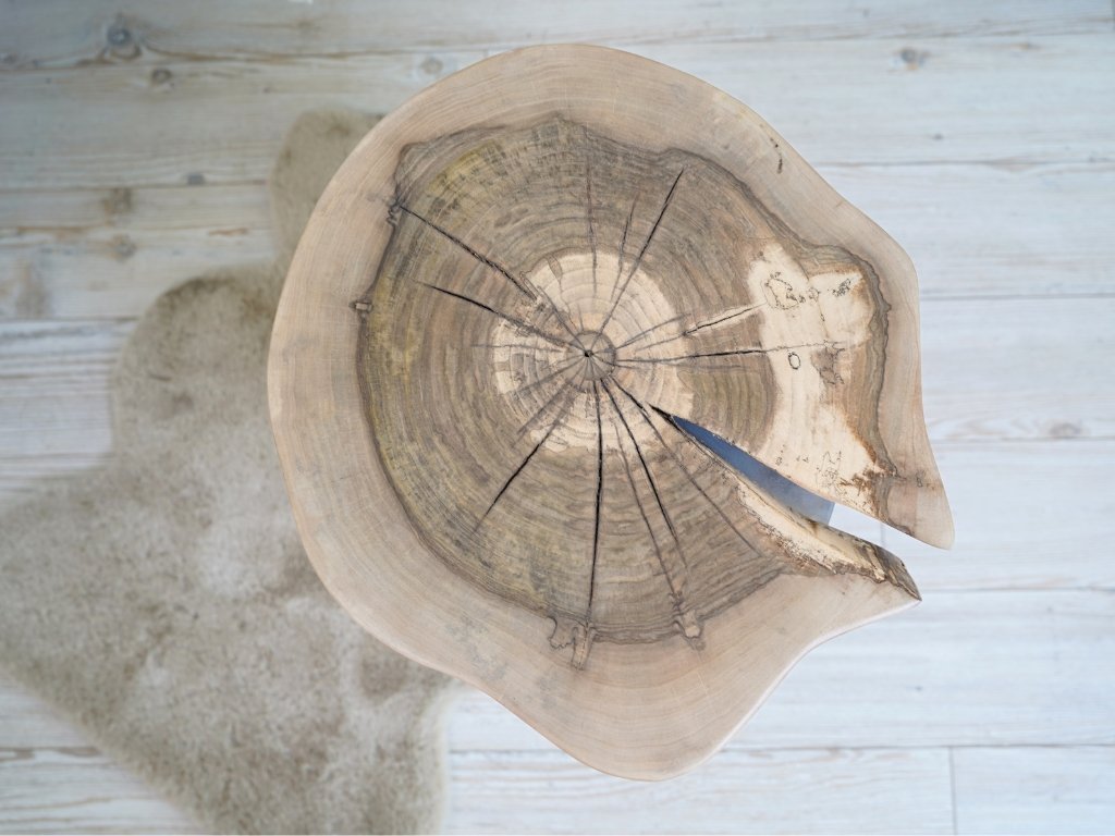 Konferenčný stolík je kompletne vyrobený v Českej republike z prírodného orechového dreva a má priemer 49 cm vo svojej najväčšej dĺžke. Okraje stolíka sú ručne opracované do krásne zaoblených tvarov, presne tak, ako strom narástol.