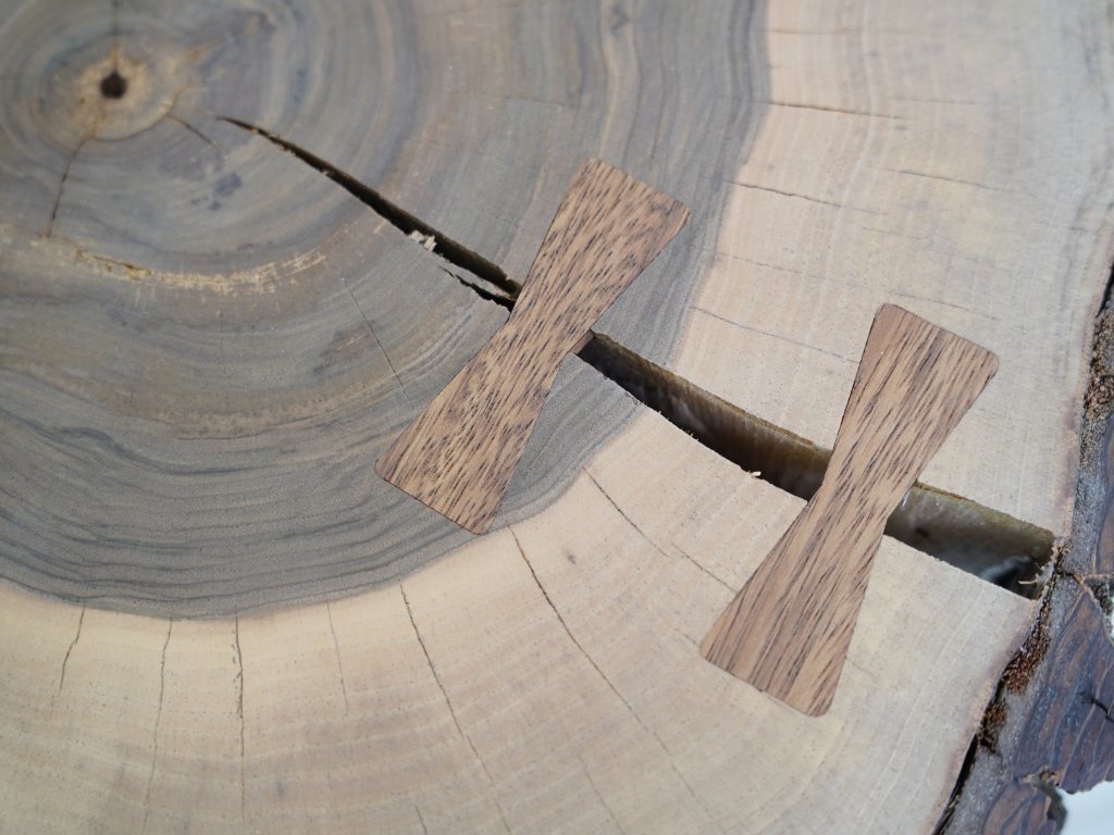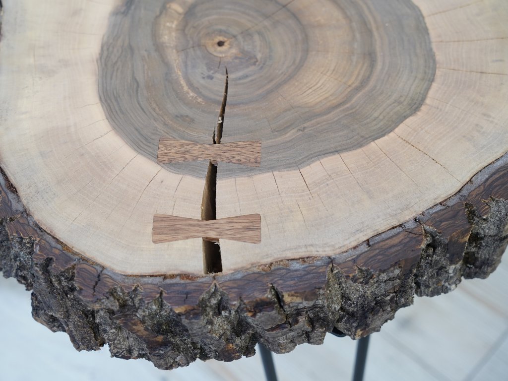 Stolík zdobia dva decentné drevené motýliky, ktoré sme do dreva implementovali kvôli praskline v dreve. Stolík tak vydrží skutočne všetko. Stolík tak vydrží skutočne všetko.