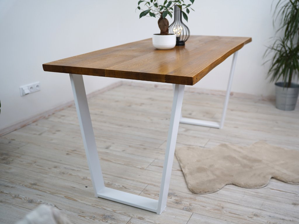 Vždy odporúčame zvoliť šírku podnožia na základe veľkosti vašej dosky. Pokiaľ máte dosku širokú napr. 80 cm, potom odporúčame zvoliť podnože v šírke 70 cm. Ideálne je, aby mala doska min. 2,5 cm presah z každej strany. Záleží samozrejme na estetike, čo sa vám páči. Doska môže mať cez podnože presah aj 10 cm, na stabilitu stola to nebude mať žiadny vplyv.