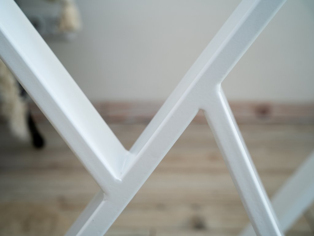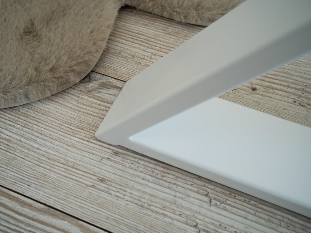 Povrch podnožia je vykonávaný pomocou komaxitu v bielej farbe na hranici medzi matom a leskom. Na spodnej hrane podnožia nájdete plastové koncovky, ktoré eliminujú riziko poškriabania podlahy.