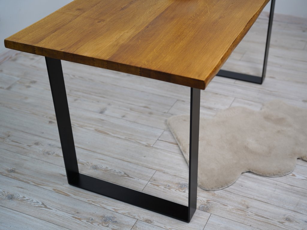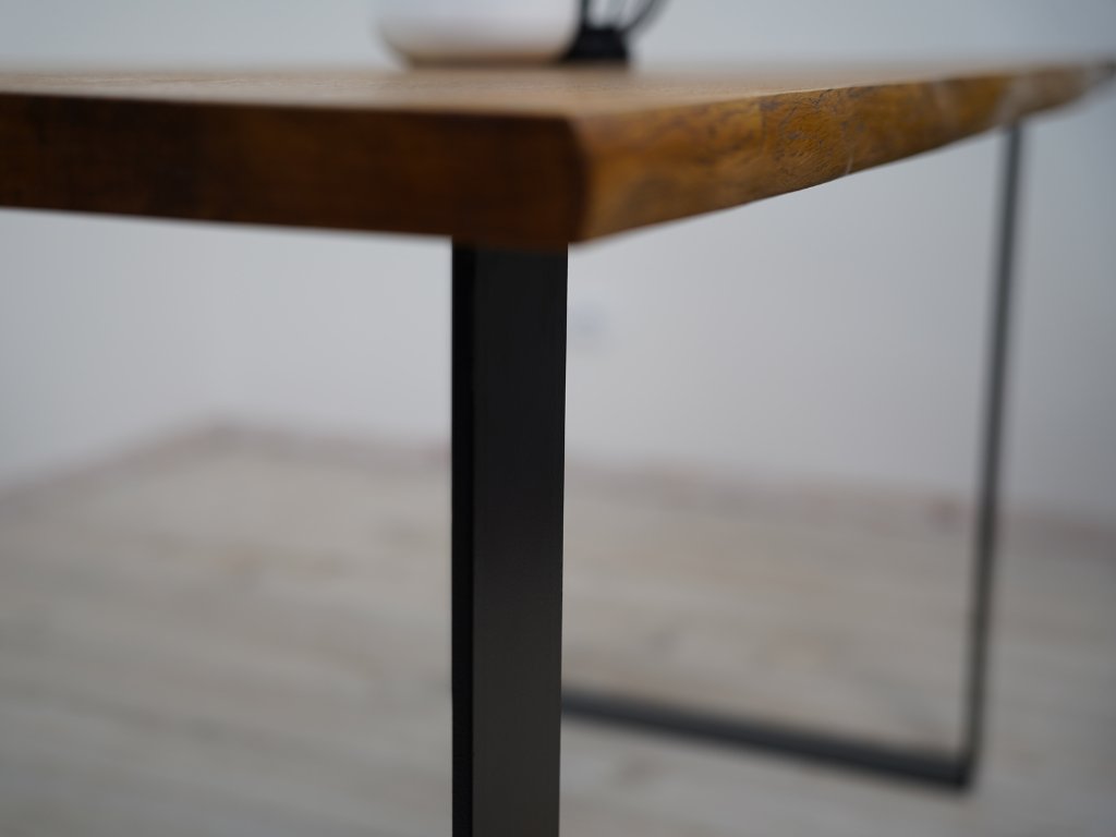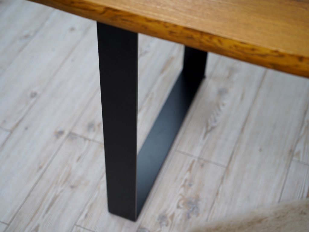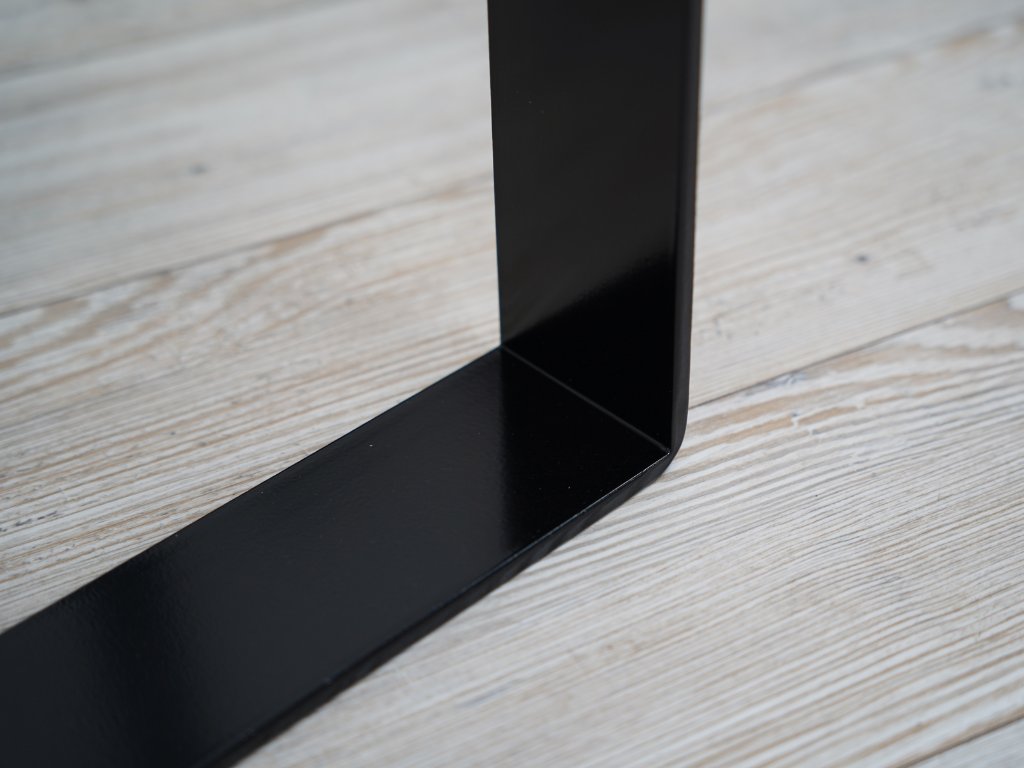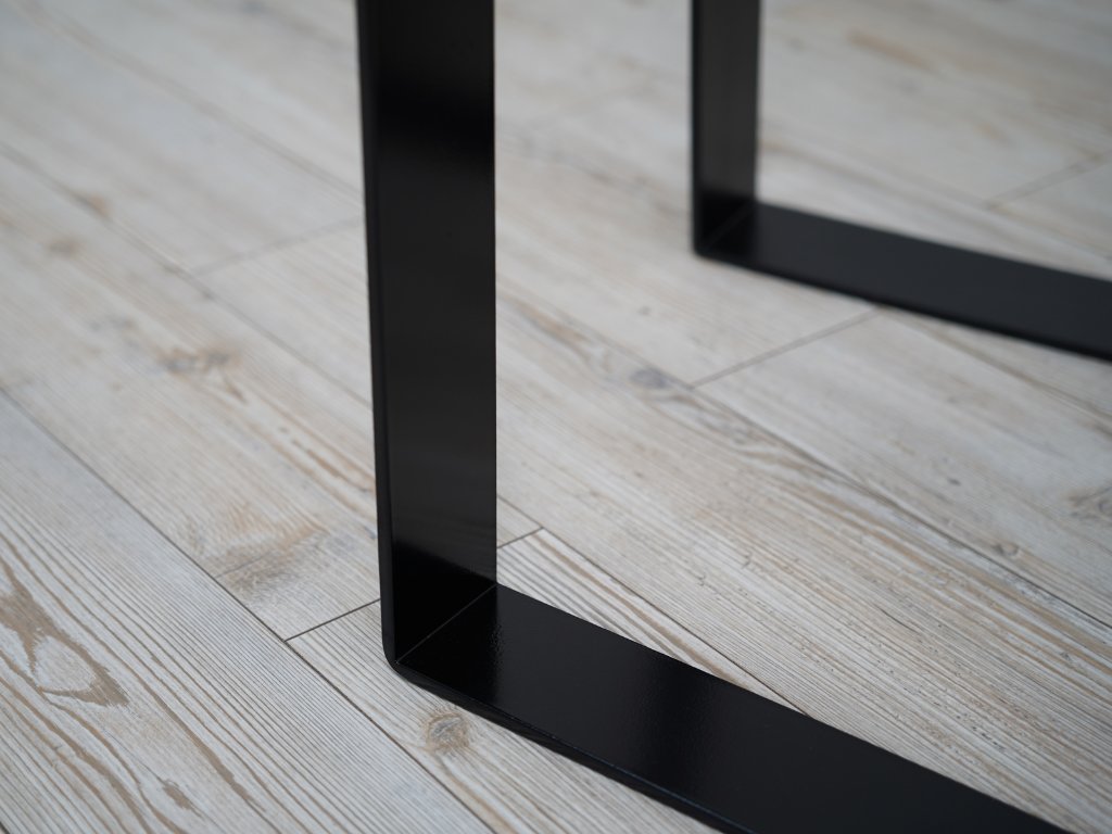 Z hľadiska designu je toto jeden z našich najvydarenejších kúskov. Z priečneho profilu toto extrémne tenké železo pôsobí pod stolovou doskou veľmi subtílne až neviditeľne. Napriek tomu sú podnože veľmi ťažké a unesú naozaj veľa. Z konštrukčného hľadiska ale pri kúpe prosím majte na pamäti, že vzhľadom na minimálnu hrúbku železa môže počas priečnych rázov a tlakov na dosku dochádzať k zvýšeným vibráciám na rozdiel od ostatných podnoží, ktoré máme v ponuke.