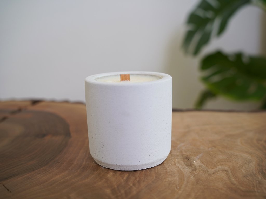 - Materiál: Beton, sójový vosk, dřevěný knot
